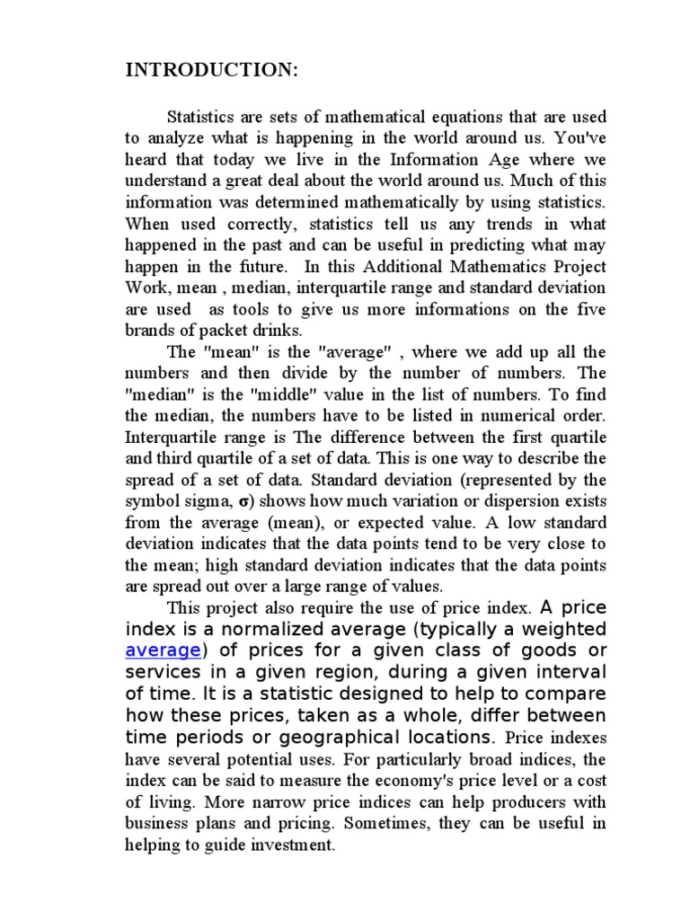 Introduction Add Maths Project Pdf Standard Deviation Median