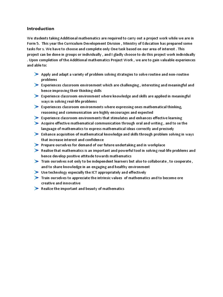 SMK PADUKA TUAN SEGAMAT ADDITIONAL MATHEMATICS MATHEMATICS PROJECT WORK 12012 NAME. Following subjects of SPM Trial Papers are available on this website. Contoh Kerja Kursus Add Math.